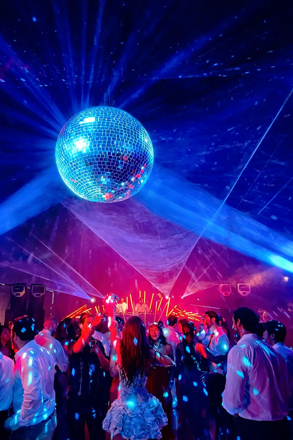 La celebración continúa con DJ en vivo, música, iluminación profesional, efectos de humo y pista de baile, creando una fiesta inolvidable para estudiantes, apoderados y profesores.