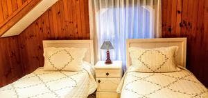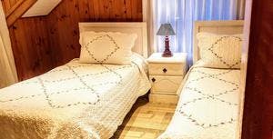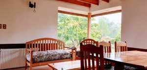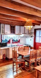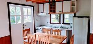 Cabaña de 6 personas, cuya distribución puede albergar hasta 8 previo aviso. Cuenta con 2 pisos; en la planta baja encontraremos la habitación principal con cama matrimonial y baño en suite, cocina equipada con platos, vasos, ensaladeras, ollas,etc. Adicionalmente living-comedor y terraza con parrilla.